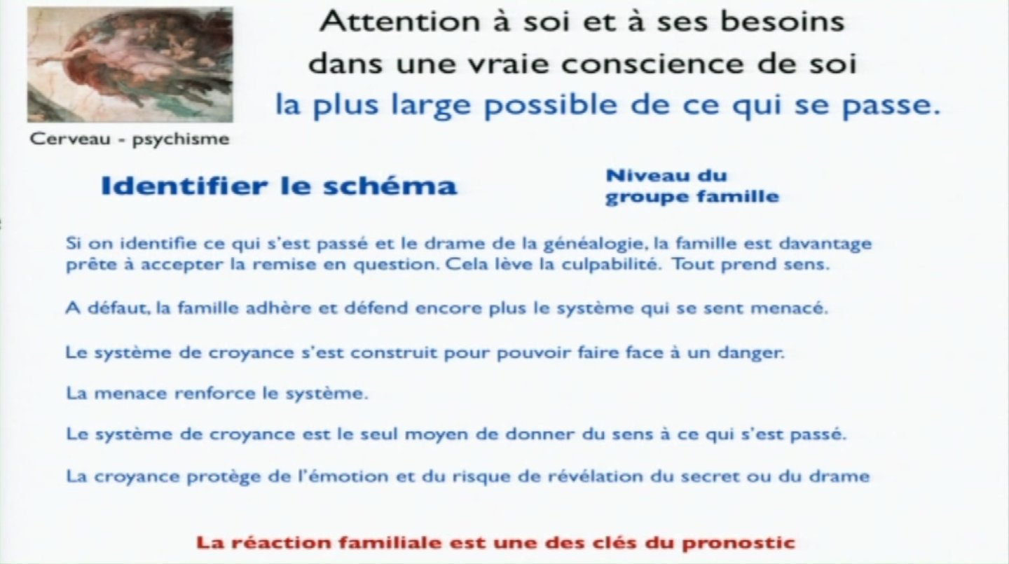 « Pour le patient comme pour sa famille, cette maladie se caractérise par un fort sentiment d’impuissance. Au cours du temps, la maladie devient une identité. » Or, « Si on tombe malade avec un système de pensée, on ne peut pas guérir avec le même système ».